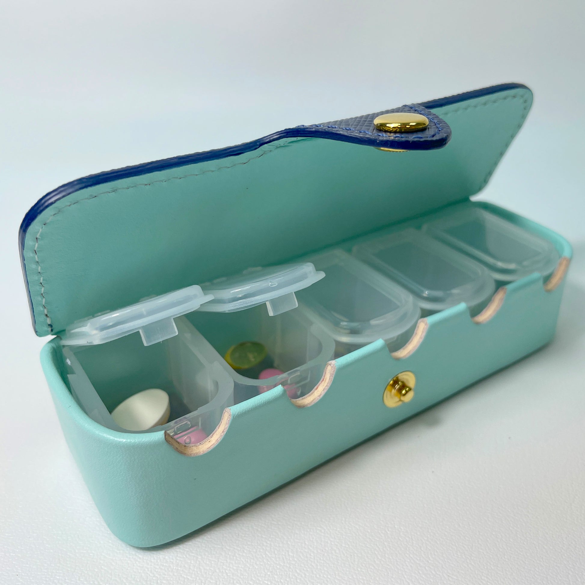 這款真皮長型藥盒結合了精緻工藝與實用設計,選用高品質真皮製成,手感柔軟且耐用。內部設有多個隔層,可分類存放不同藥品,方便取用。緊密的扣合設計確保藥物不會撒漏,輕便易攜,適合日常外出或旅行使用。簡約大方的外觀,不僅實用,還提升了個人品味,是自用或送禮的理想選擇。