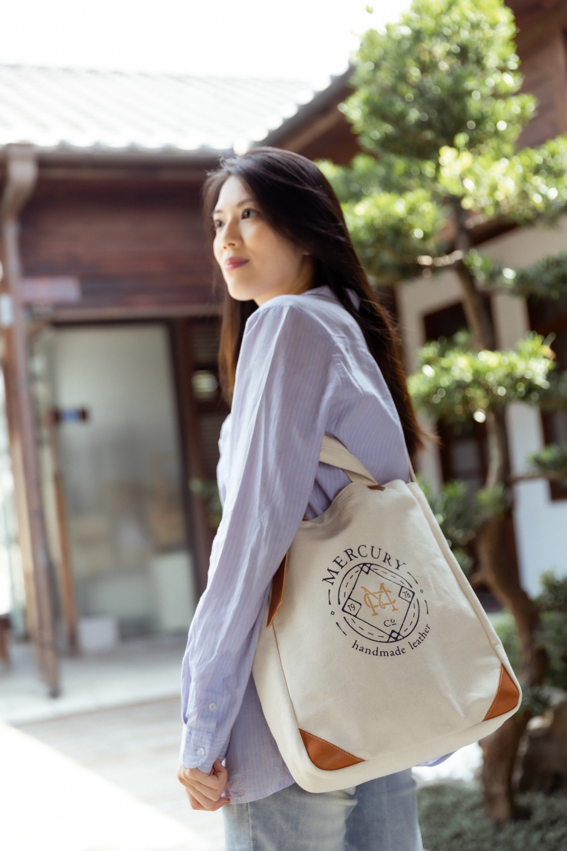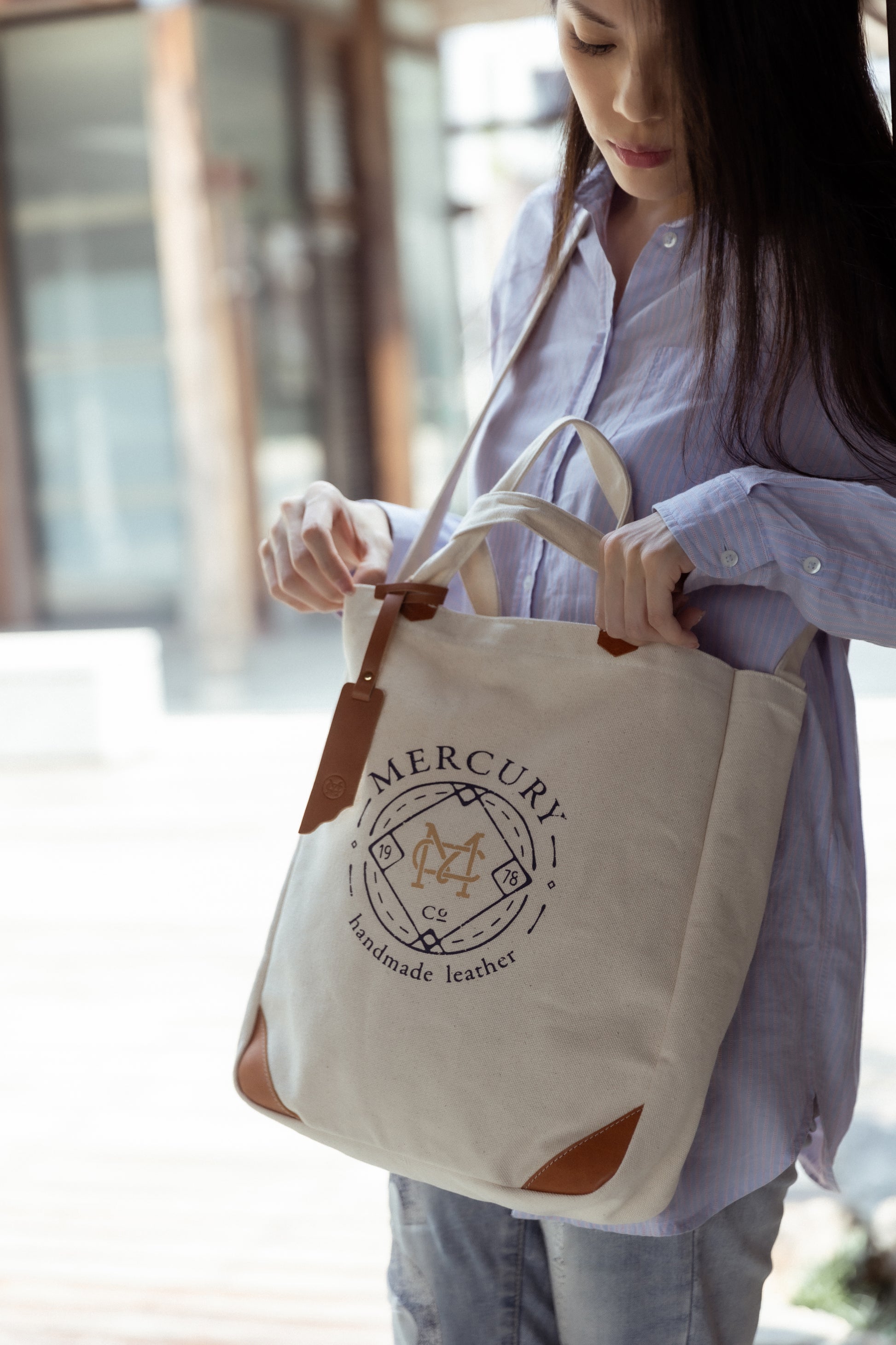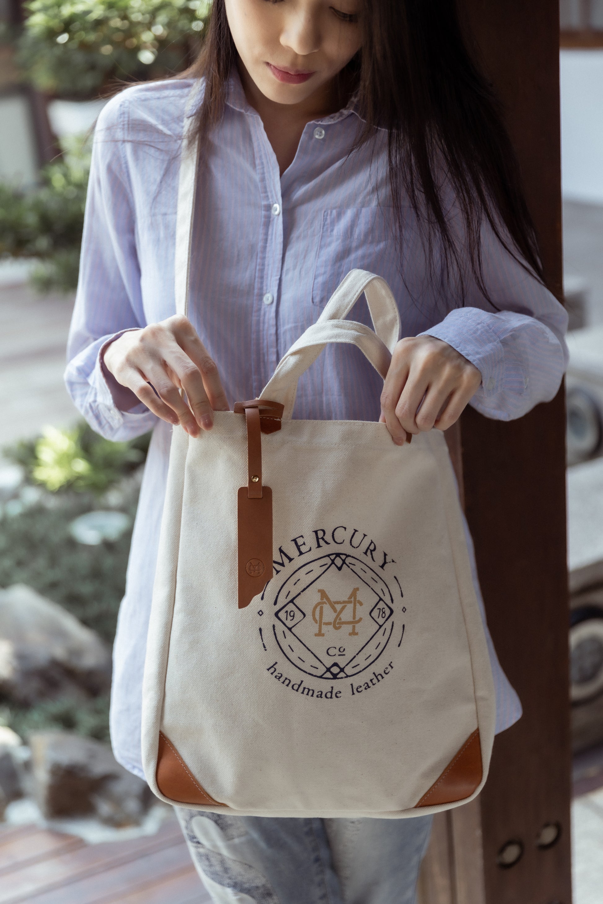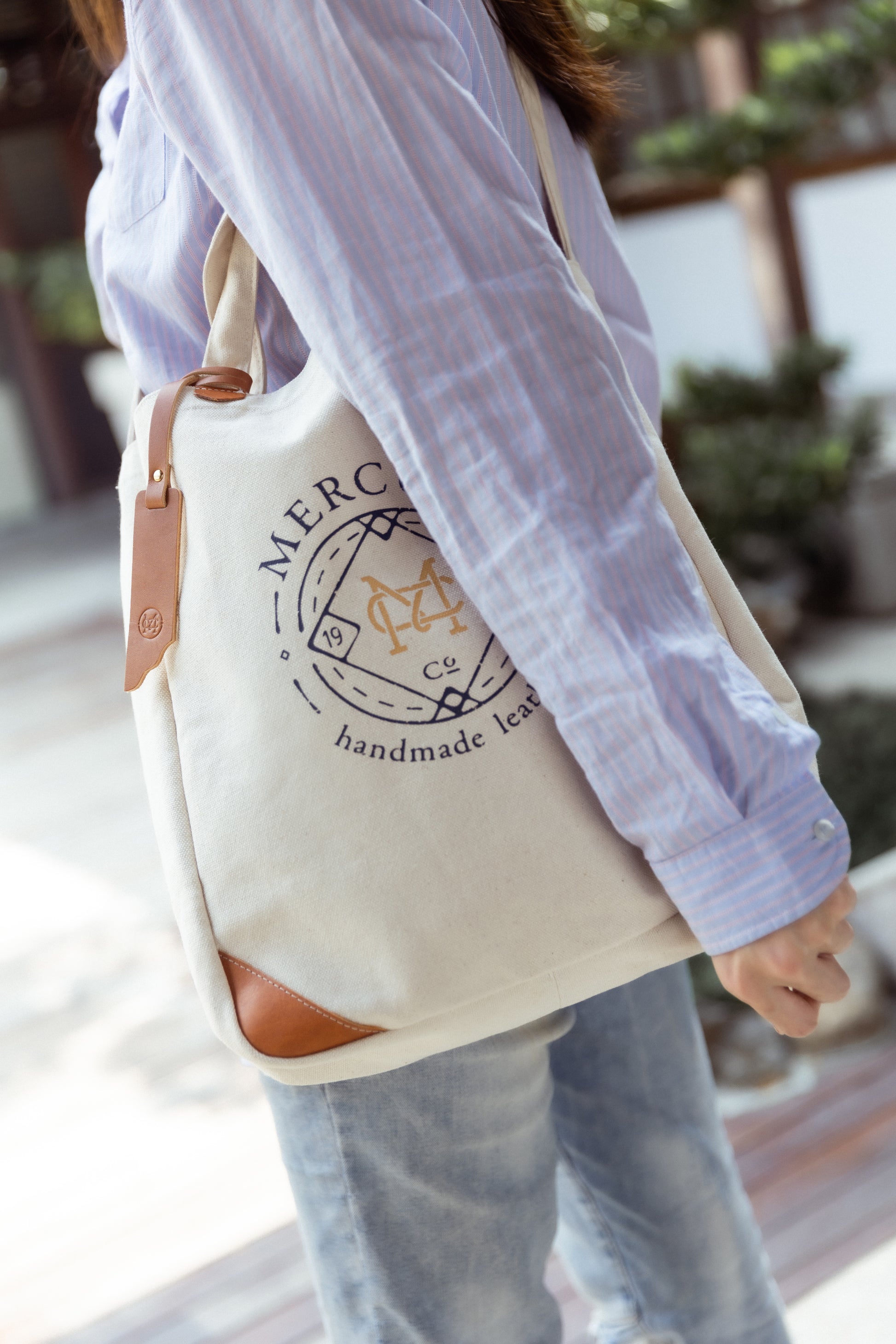 底部邊角以義大利進口真皮裝飾,使原來率性簡便的帆布包增添些許人文品味的氣息。