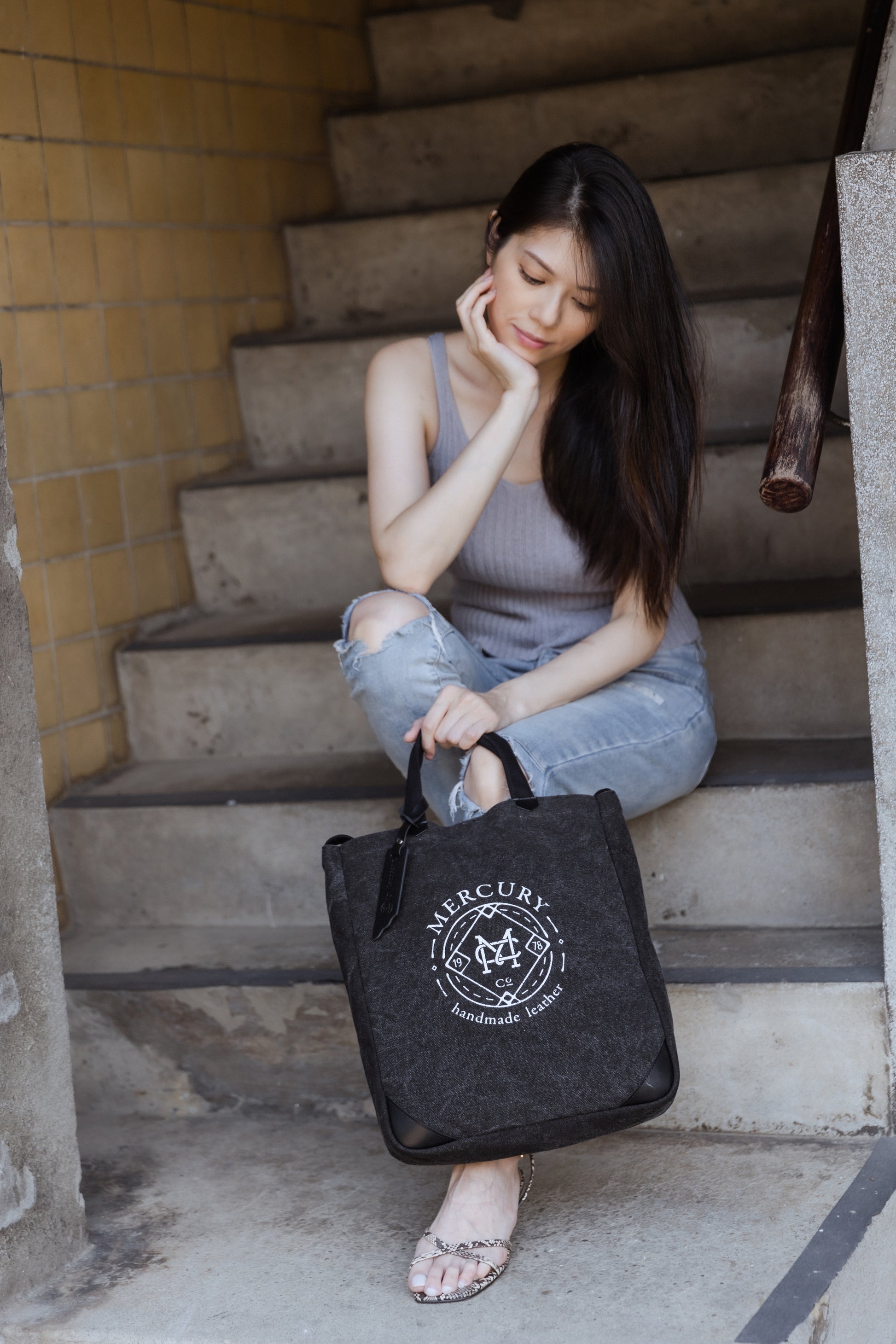 底部邊角以義大利進口真皮裝飾,使原來率性簡便的帆布包增添些許人文品味的氣息。