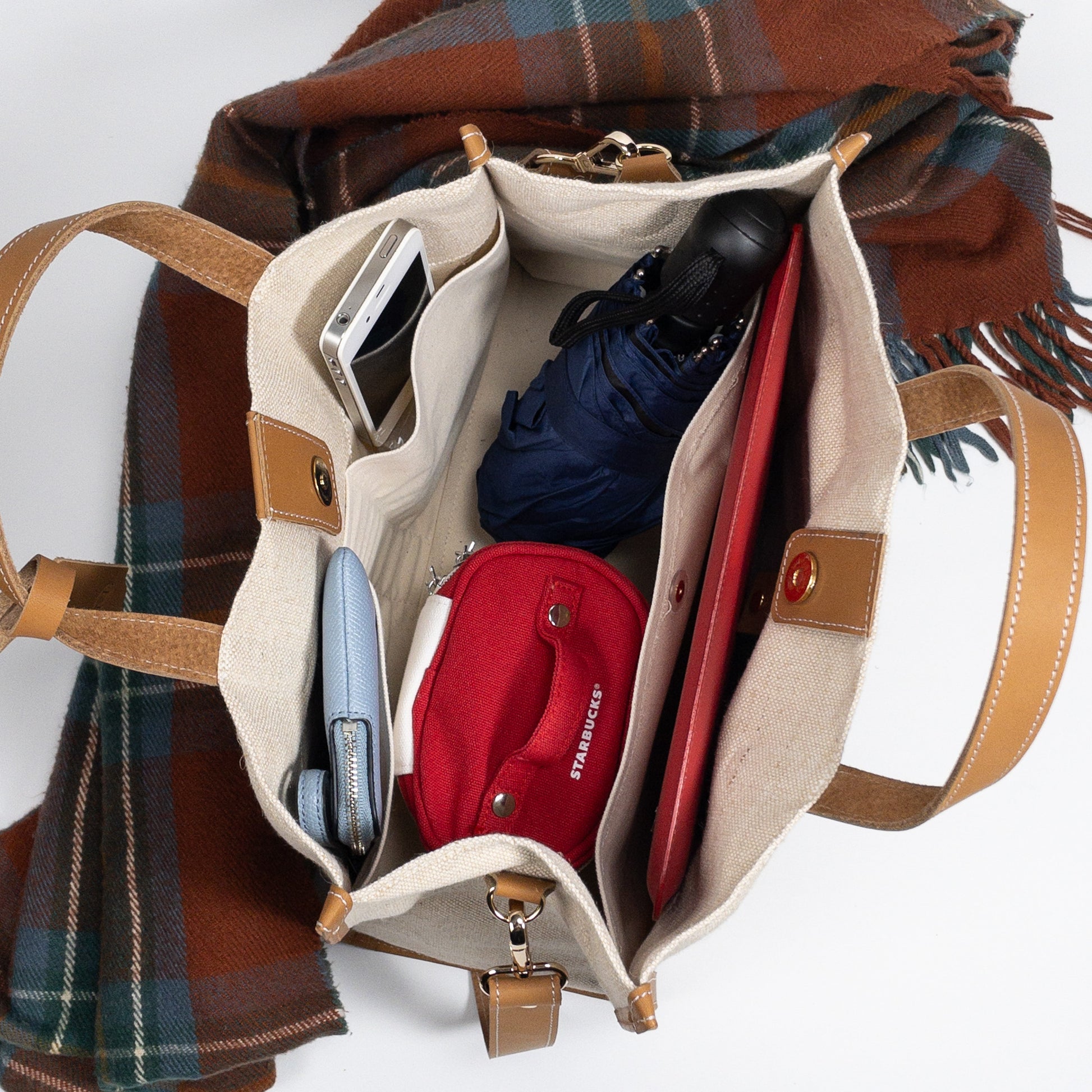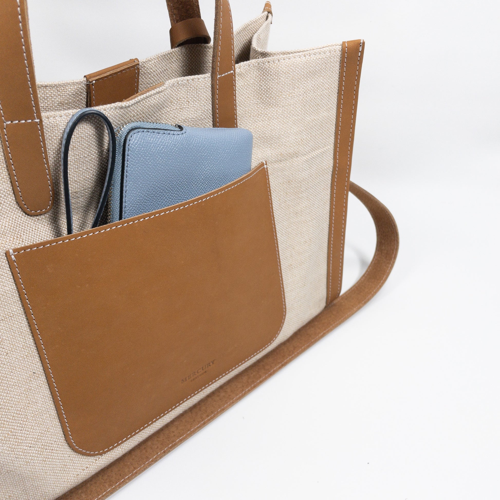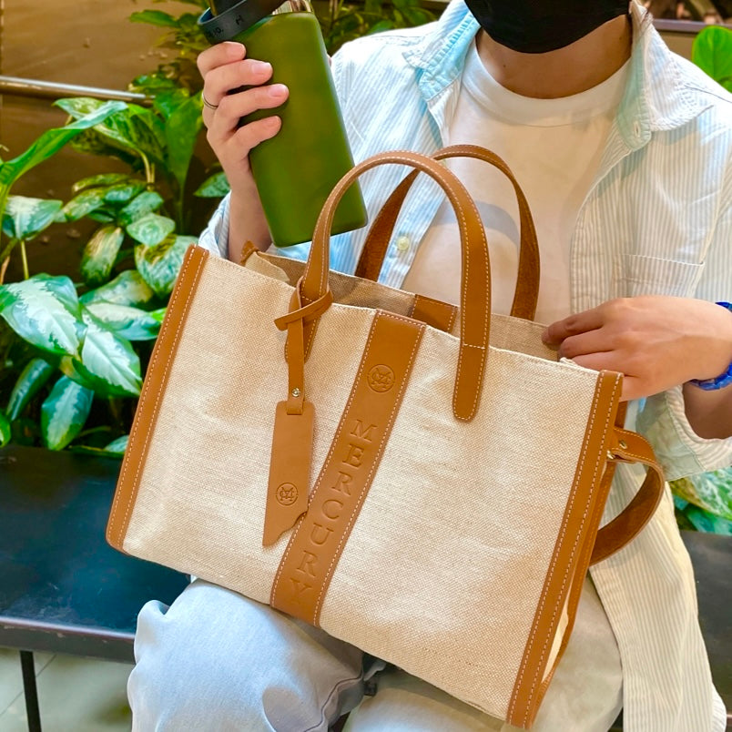 真皮部分為高級天然牛皮, 包身為天然麻布製作。