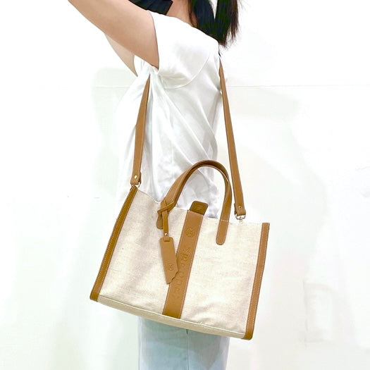 00 真皮麻布大容量手提/側揹兩用包